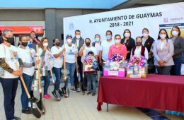 La alcaldesa de Guaymas (municipio con 113 082 habitantes situada en el Golfo de California), Sara Valle, entregó palas, cubetas de hierro, mascarillas, gel an...