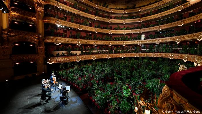 El Gran Teatro Liceu de Barcelona retomó sus actividades tras meses de cuarentena con un show brindado a 2.292 plantas que se ubicaron en la platea, el anfiteatro y los tres pisos de palcos del teatro mientras en el escenario un cuarteto de cuerda interpretó «Crisantemi» del italiano Giacomo Puccini.