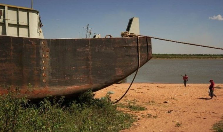El río, que en promedio tiene un caudal de unos 17.000 metros cúbicos por segundo, este año cayó hasta los 7.000 m3/s, apenas por encima del valor mínimo histórico de 5.800m3/s, registrado en 1944.