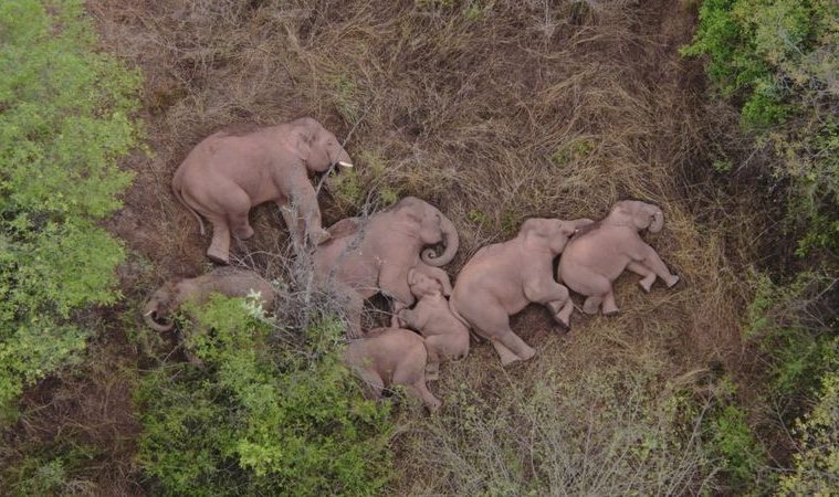 Una manada de elefantes asiáticos errantes se volvieron famosos en China por tomar una siesta en un bosque luego de un recorrido de 15 meses por el país.