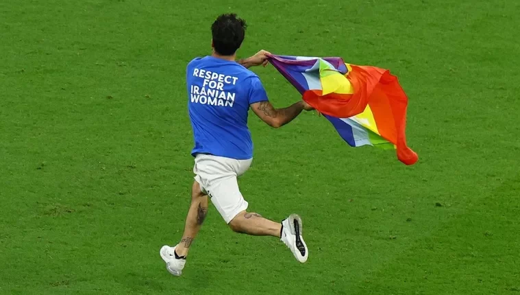 El simpatizante que irrumpió en el partido trasladó, al campo de juego, dos problemáticas candentes en esta edición mundialista como lo son los Derechos Humanos tanto en Qatar como en Irán.